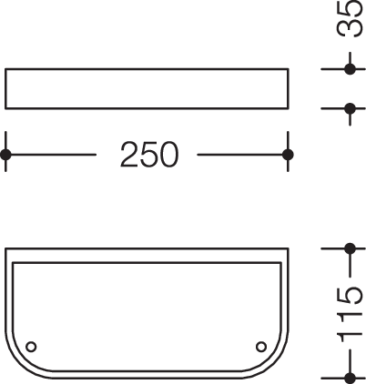 - 250 mm breit, 35 mm hoch und 115 mm