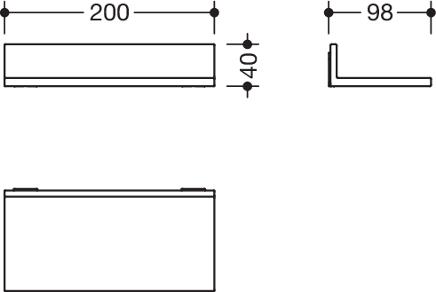 - 200 mm breit, 40 mm hoch, 98 mm tief