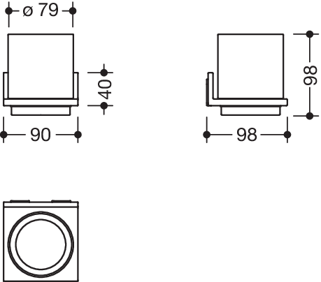 - 90 mm breit, 98 mm hoch, 98 mm tief