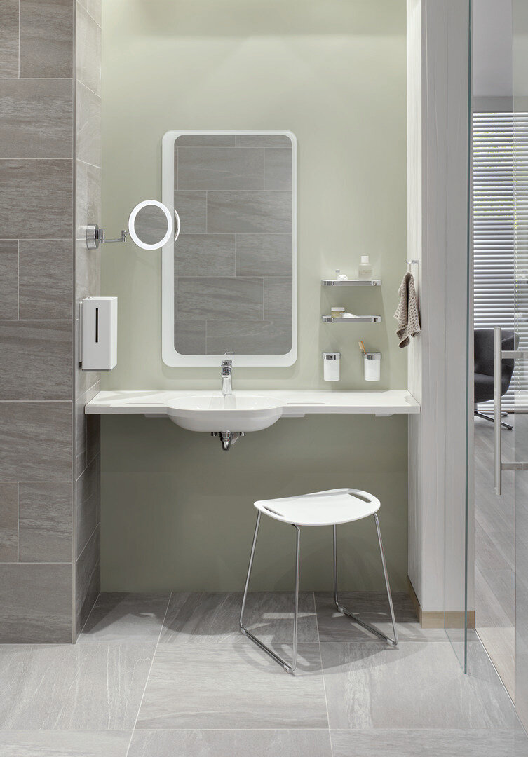 Puristisches Design und unbegrenzter Komfort: Dies gelingt der Marke Hewi mit ihrer Designlinie System 800. Accessoires für barrierefreies Wohnen werden hier in funktionaler Klarheit ohne Schnörkel präsentiert.