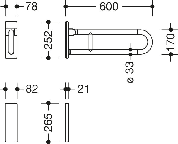 Wandplatte, Gelenk und Stütze in HEWI