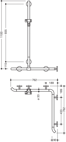 HEWI Dusch-Wannenhdl., AM1:1100 W1/2:762 verschiebb.Br.H. 98, chromoptisch besch.