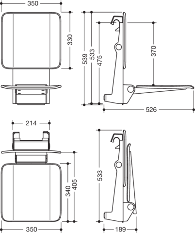 - Sitzfläche 350 mm breit und 340 mm