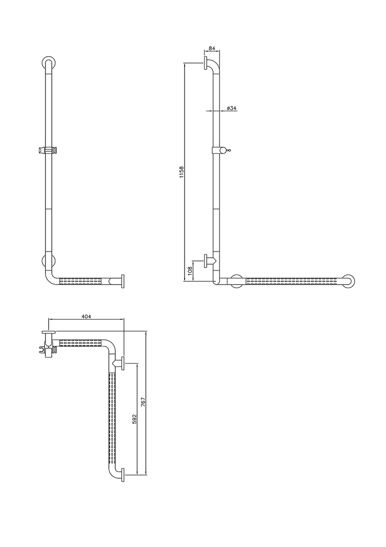 Dieser Nylon 400 Duschhandlauf von NORMABU mündet nahtlos in einer Brausehalterstange mit stufenlosem Brausehalter. Ebenso lassen sich Höhe- und Neigungseinstellung der Brause stufenlos anpassen. Der Duschhandlauf kann – je nach Einsatzort – sowohl links- als auch rechtsseitig montiert werden und kann zum Einhängen eines Duschsitzes genutzt werden.