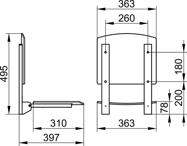Klappsitz mit Lehne Plan