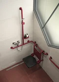 Als Erweiterung zu Nylon 300 zeichnet sich die Designlinie Nylon 400 von Normbau ebenfalls durch ihre klare Formensprache und langlebige Materialien aus. Zusätzlich sind sämtliche Handläufe und Stützen entlang ihrer Griffzonen mit rutschsicheren, strukturierten Beschichtungen ausgestattet. Für noch mehr Sicherheit im barrierefreien Bad.