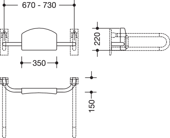 Rückenstütze Hewi 805 Edelst.ausziehb. 670-730mm Bef.Stützklappgr.m.Wandpl.abd.