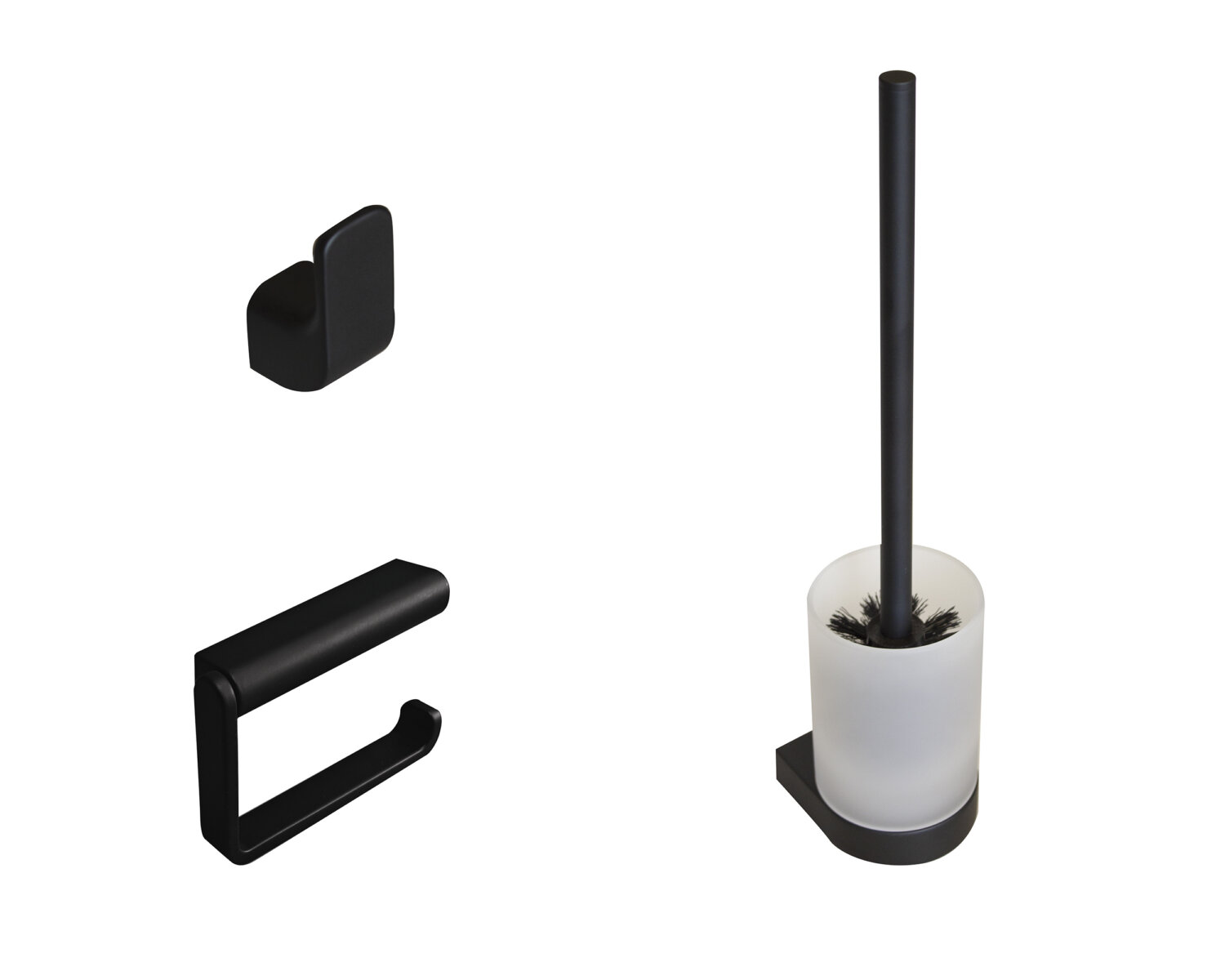 WC Set derby V3 mit Papierh. o. Deckel Bürstengarnitur Haken schwarzmatt VIGOUR