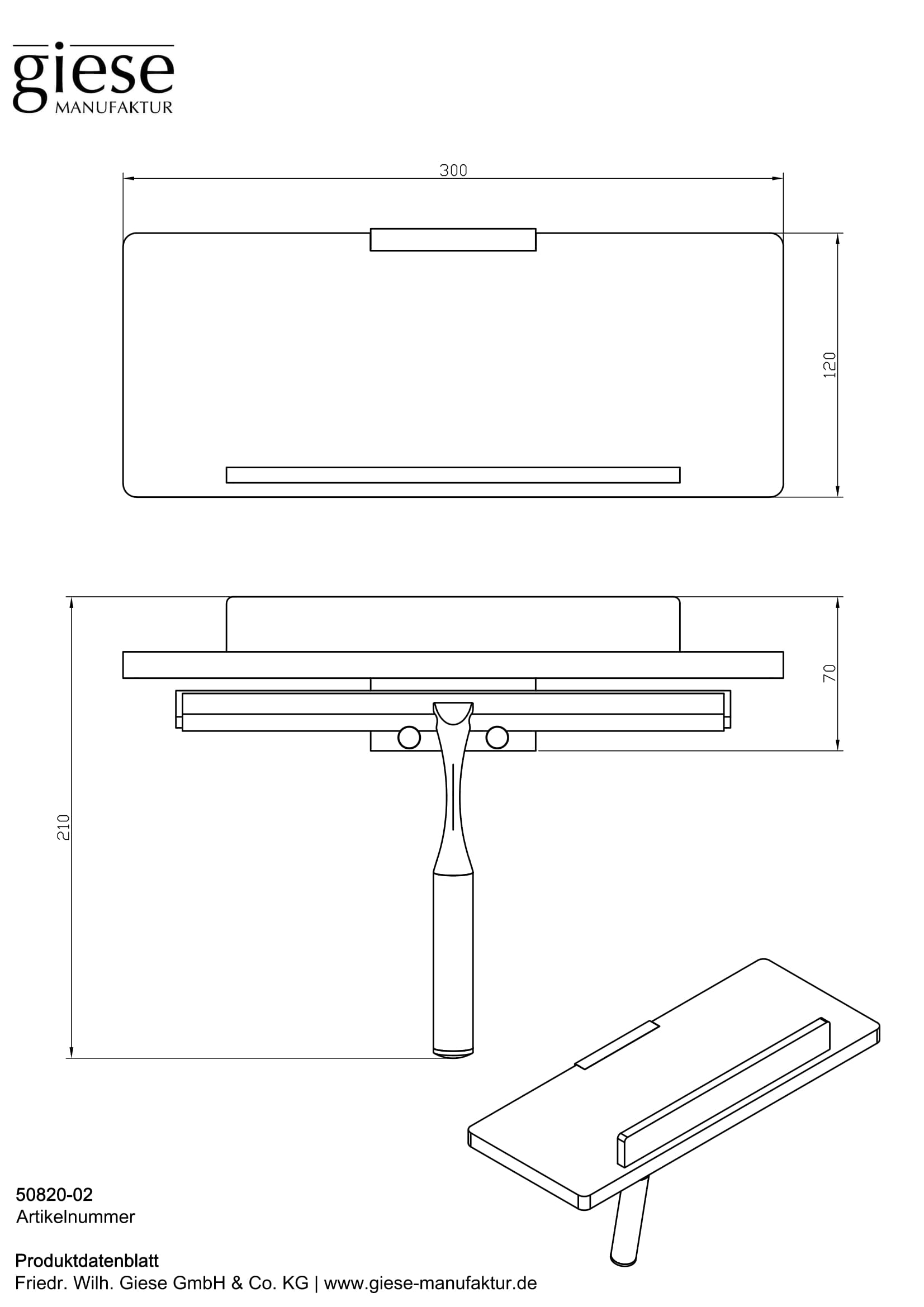 Dusch Ablage mit Haken und Wischer 300x120x210mm Giese