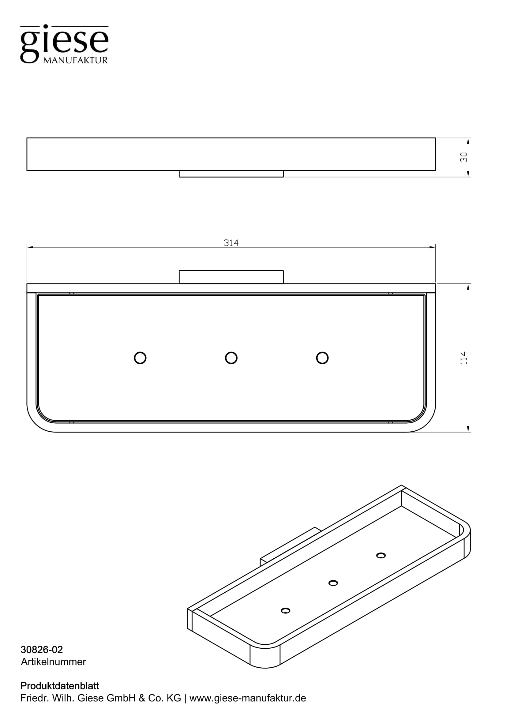 Dusch-Konsole Giese 314x114mm verchromt Einsatz HPL weiss
