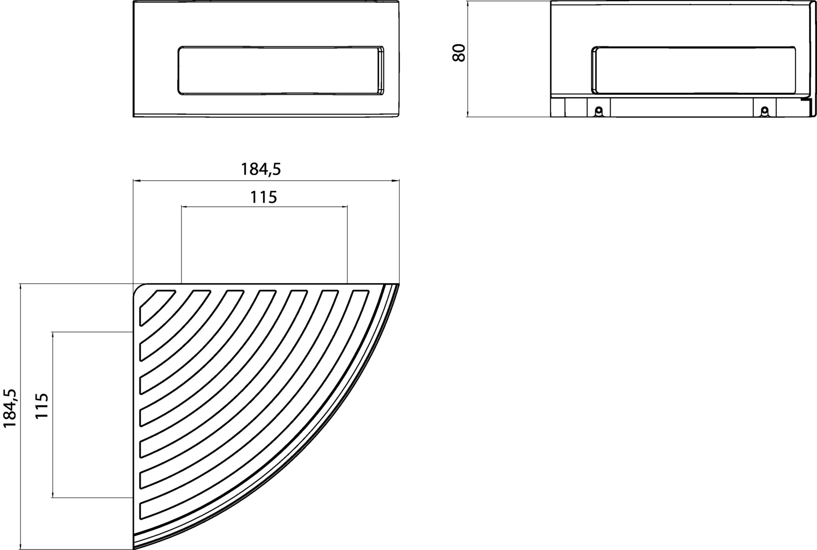 Eckmaß: 185 mm