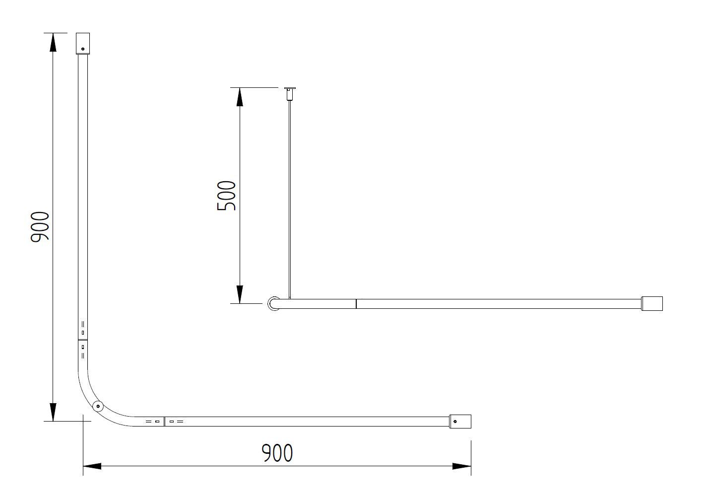 Eckvorhangstange aus Edelstahl