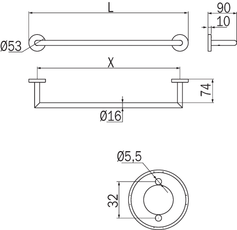 Badetuchhalter Gealuna 60cm verchromt Inda