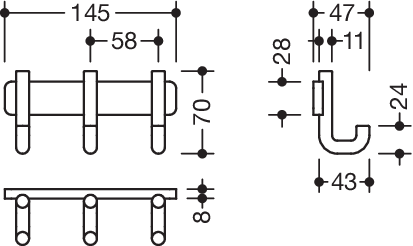 Die HEWI Hakenleiste aus der Serie 480 präsentiert sich mit drei rechtwinklig gebogenen Haken im Rundrohrdesign auf einer flachen Sockelleiste mit abgerundeten Ecken. Diese softe Optik verleiht dem Accessoire Anmut und Eleganz. In verschiedenen edlen Oberflächen erhältlich, setzen Sie somit Akzente der Extraklasse.