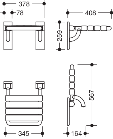 Klappsitz Hewi 345x408mm reinweiss m.Wandplatten o.Befestigung
