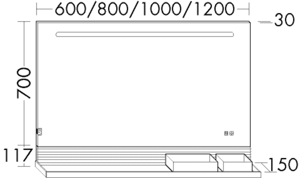 Korpus Spiegel Alu-Optik, 1 Wandablage