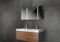 Bleibende Eindrücke: Diese liefert der Spiegel Udine von Vogelsang in perfekter Manier. Es handelt sich um einen hochwertigen hinterleuchteten LED-Spiegel. Er ist dreiteilig gestaltet und besitzt klappbare Seiten. Durch diese intelligente Gestaltung fällt es leicht, sich von allen Seiten eingehend zu betrachten. Besonders praktisch: Die klappbaren Seiten verfügen auf der jeweiligen Rückseite ebenfalls über einen Spiegel. Außerdem sind die Seiten des Udine mit einem Aluminium-Sichtschutz ausgestattet. Darüber hinaus fallen die polierten Kanten und die Sandbestrahlung ins Auge. Sowieso setzt Udine auch durch sein puristisch-stilvolles Design Akzente. Im wahrsten Sinne Highlights bietet dabei die Beleuchtung. Sie gibt ein angenehmes Neutralweiß ab, erstrahlt wahlweise aber auch in Warmweiß. Toller Zusatz: Der Badspiegel lässt sich mit einem Touch- oder mit einem Gestensensor kombinieren, zudem ist Emotion-Light möglich. Klar und fokussiert lässt Udine von Vogelsang im Bad keine Wünsche offen.