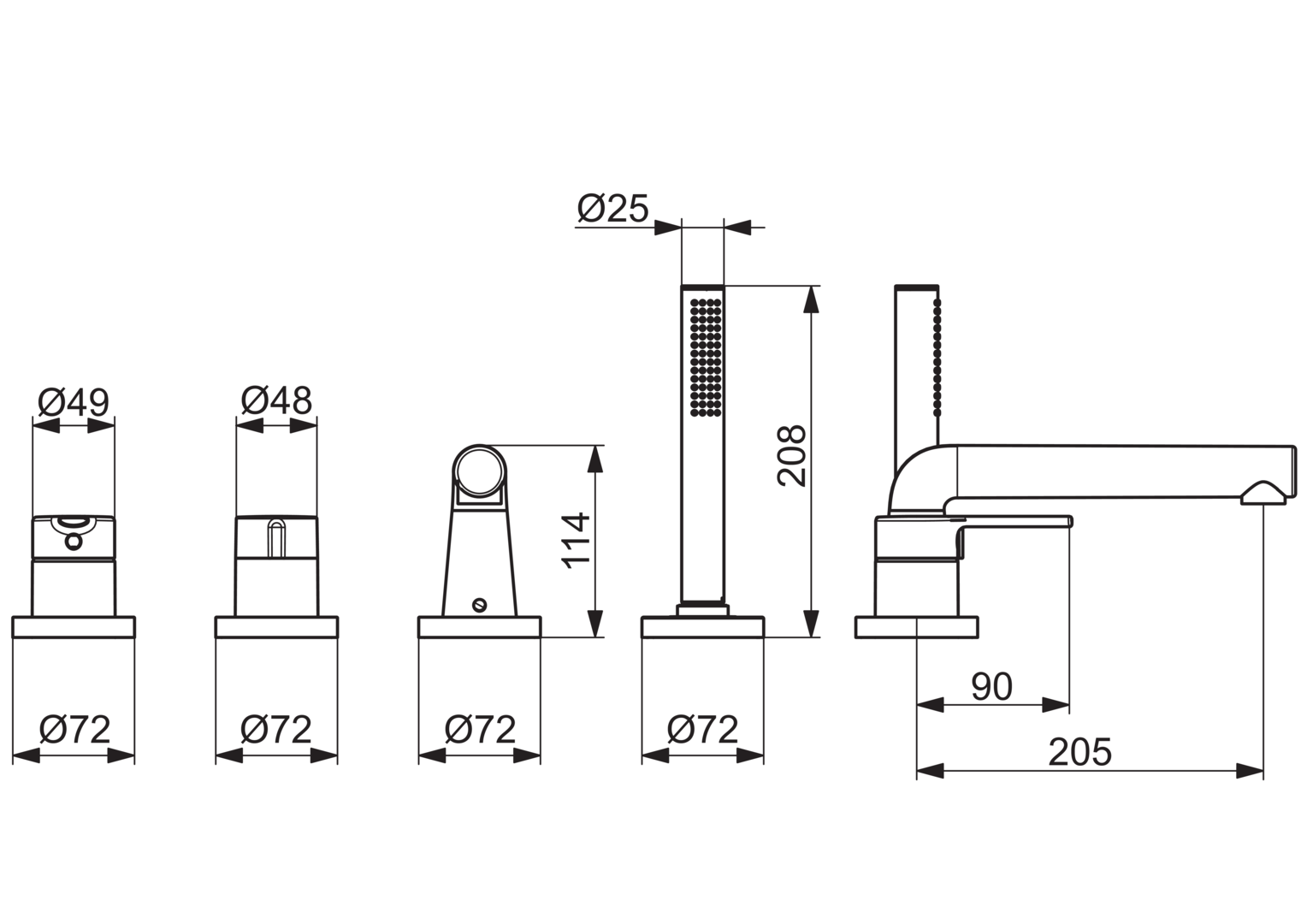 - 4-Loch Wannenrandmontage