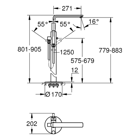 GROHE EH-Wannenbatterie Lineare 23792_1 Bodenmontage FMS hard graphite gebürstet