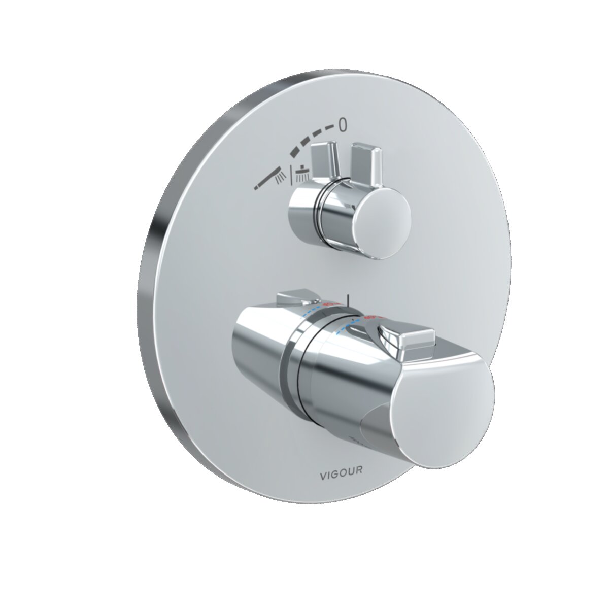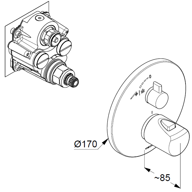 Das VIGOUR Unterputz-Thermostat von clivia V2 präsentiert sich in durchgehender runder Gestaltung und wirkt angenehm harmonisch. Die Kombinationsmöglichkeiten sind dadurch besonders vielfältig und das Thermostat lässt sich ausgezeichnet integrieren. Es ist zudem mit einer Heißwassersperre und einer Mengenregulierung ausgestattet und überzeugt damit auch auf technischer Seite. Das praktische Fertigmontageset ist optional auch mit dem passenden Unterputz-Einbaukörper und einer Wannen-Brause-Umstellung erhältlich.
