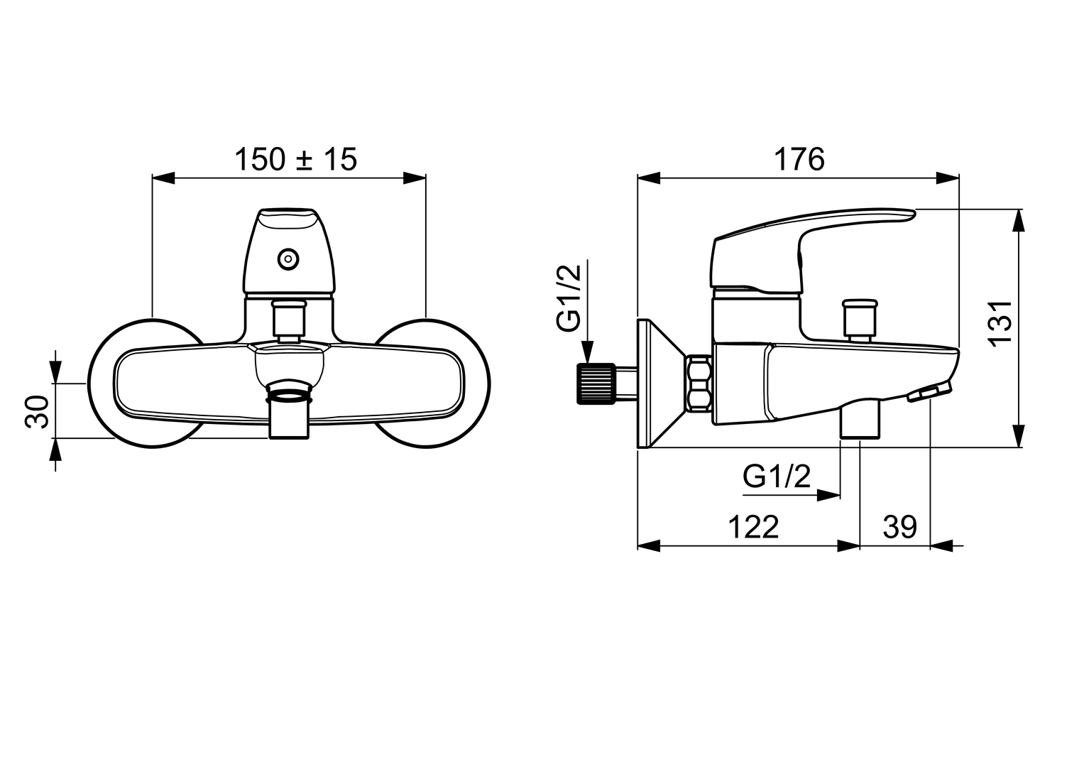 Wand-Wannenarmatur mit Brauseanschluss Hansapinto