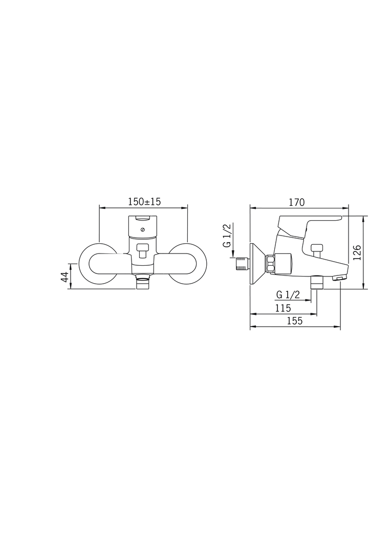 - Installationsabstand: 150 +- 15 mm