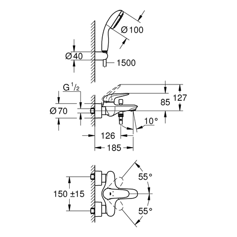 Wannenarmatur mit Brausegarnitur Eurostyle