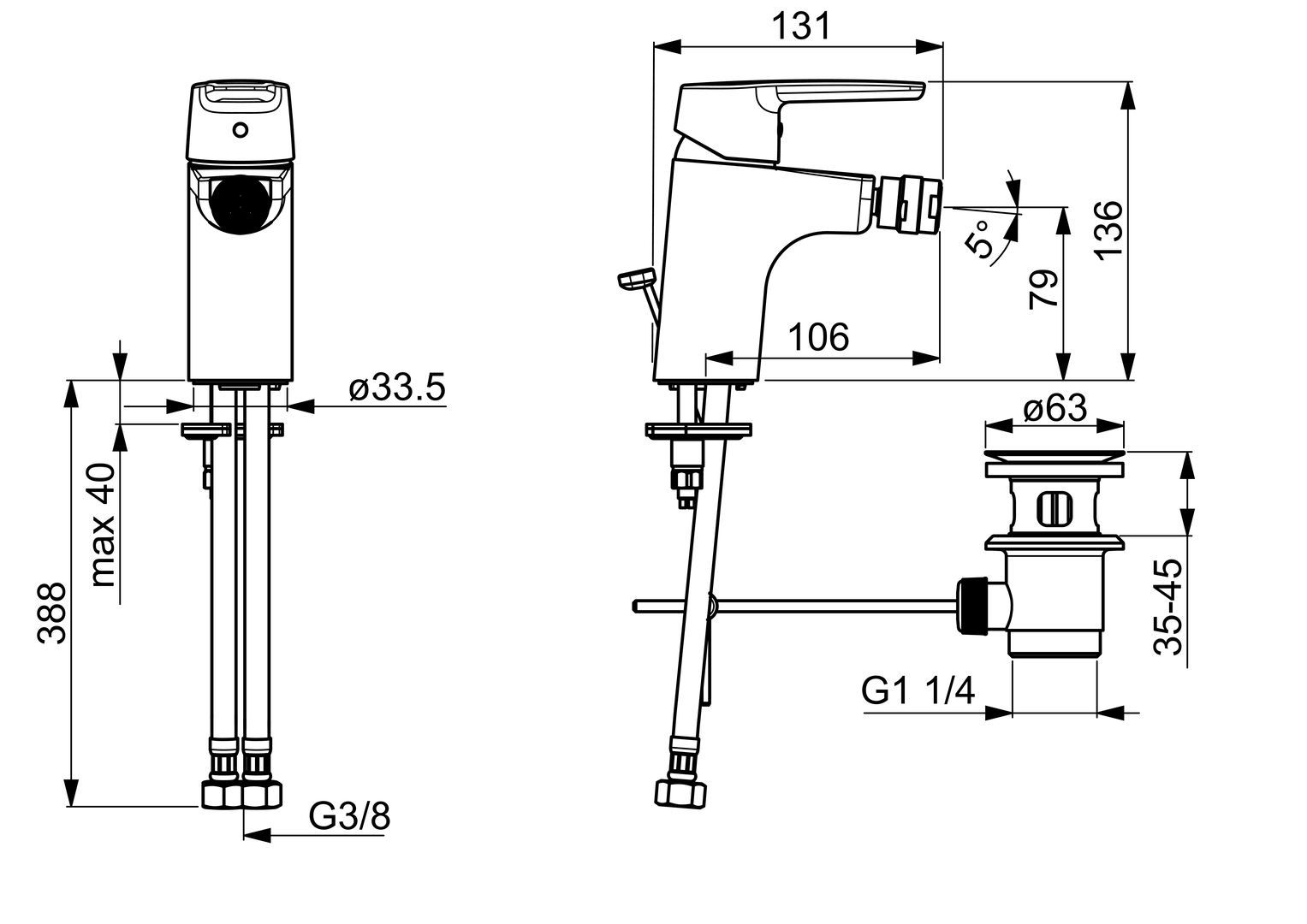 Einhand-Bidetbatterie Hansapolo m.Ablaufgarnitur verchromt
