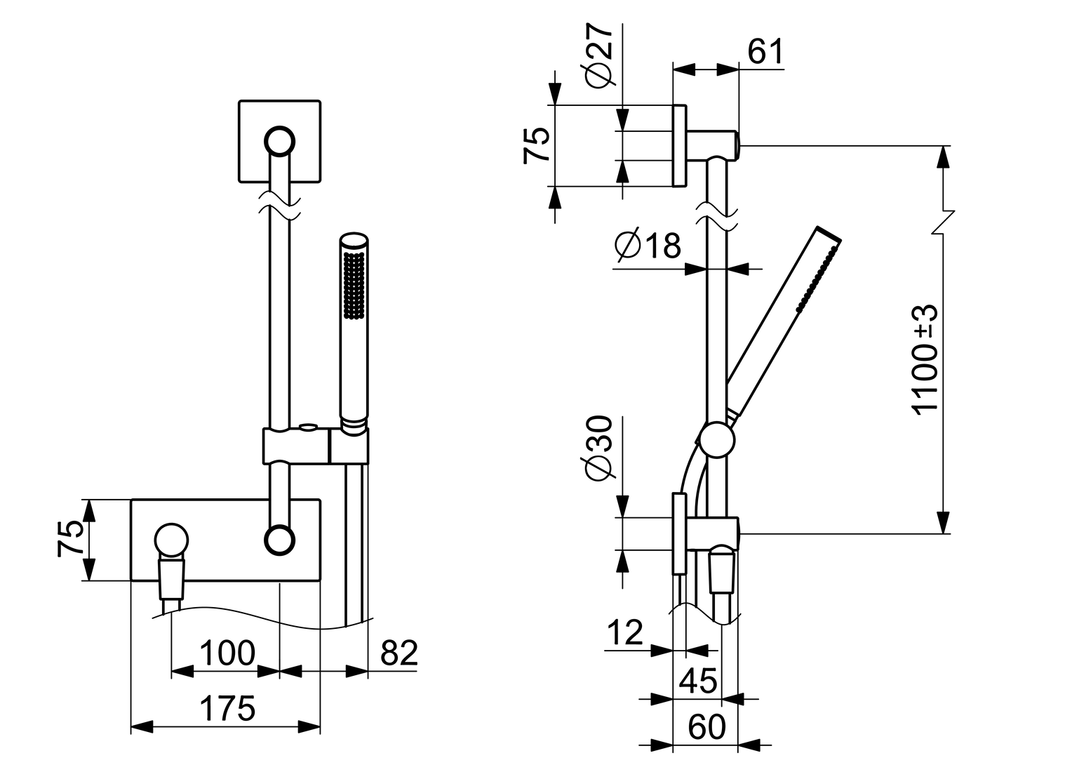 - Handbrausengröße: 25 x 70 mm