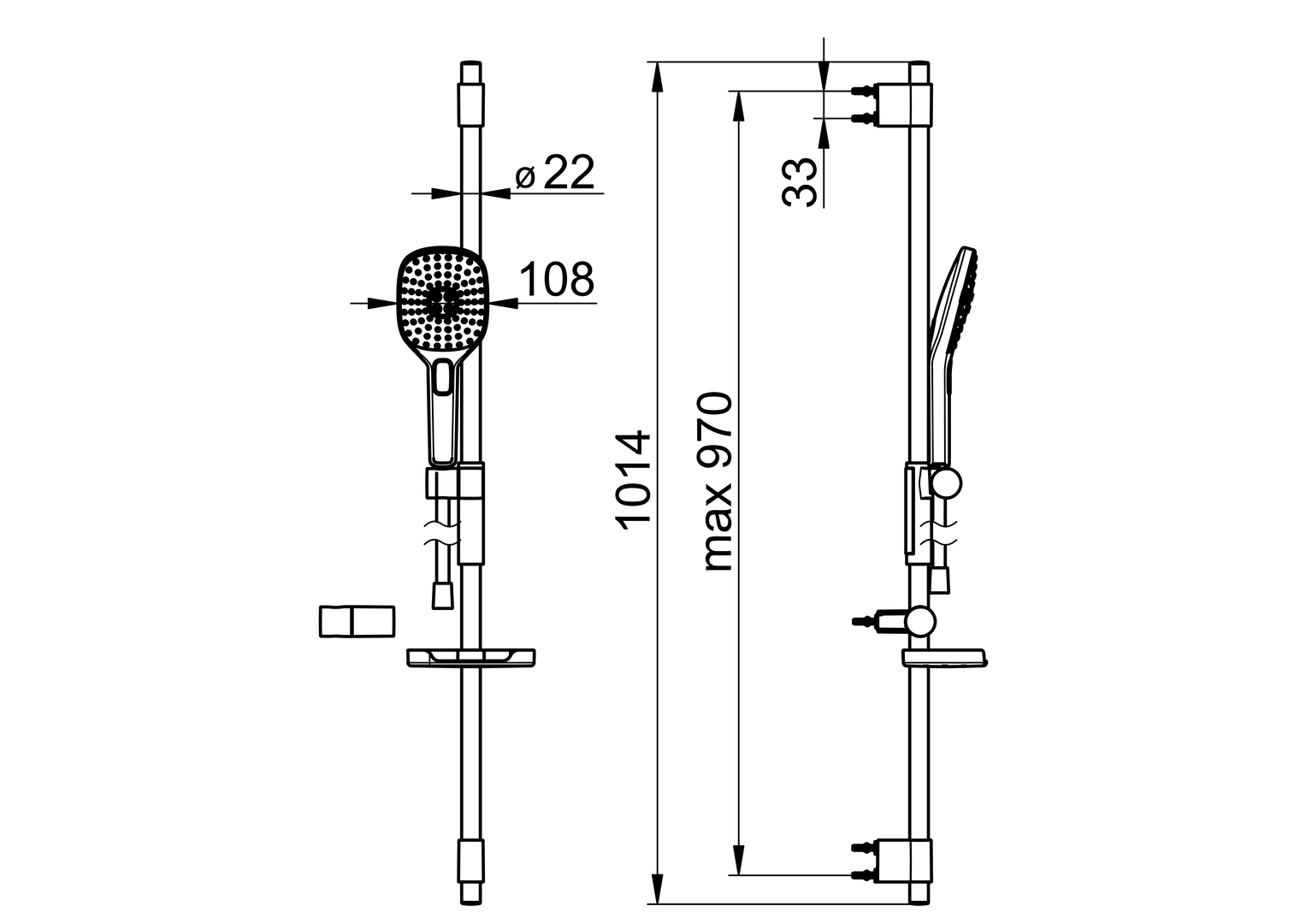 Brausegarnitur Hansaactivejet Style m. wandstange 970mm HB 3-strahlig verchromt
