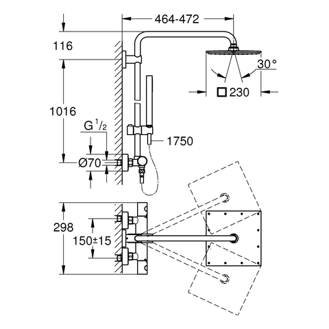 Duschsystem Euphoria XXL verch.AP-Brause Therm.KB 230mm DA 450mm Br.garn.Grohe