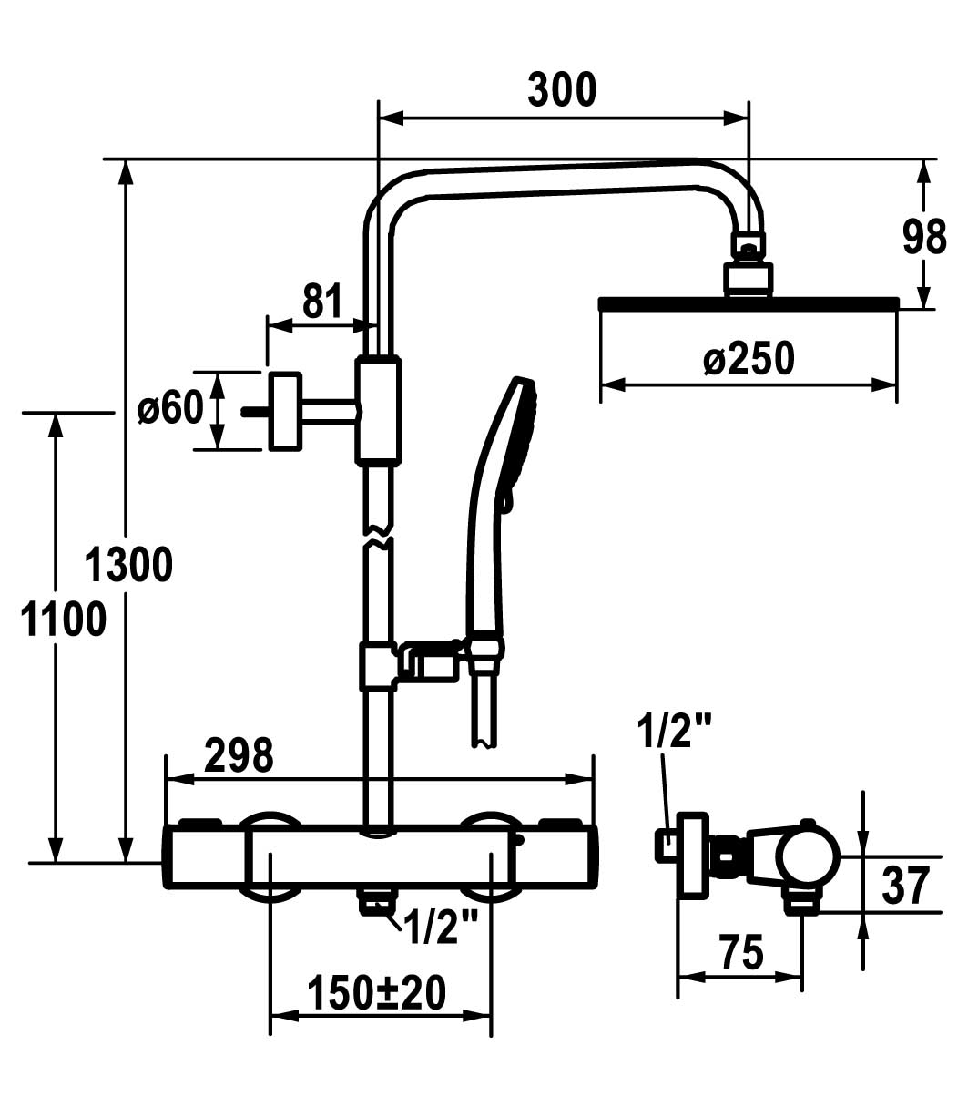 Da die Kopfbrause mit einem Kugelgelenk ausgestattet ist und sich der Brausenarm schwenken lässt, sind perfekt ausgerichtete Regenschauer hier das Leitmotiv des KWC Duschsystems. Bei Bedarf kann die wasserführende Brausestange individuell gekürzt werden und auch der Handbrausenhalter ist in der Höhe arretierbar.