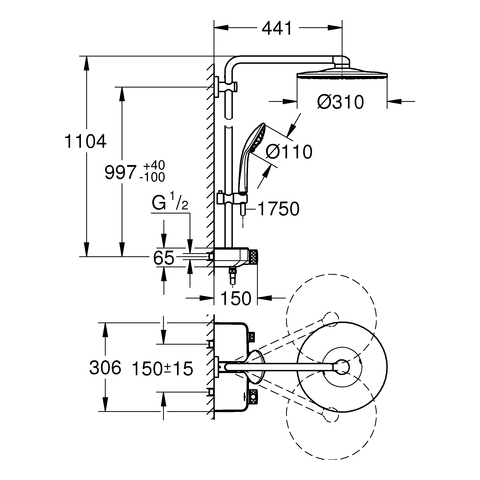 GROHE Duschsystem Euphoria SmartControl 310 Duo 26507 mit THM hard graphite geb.