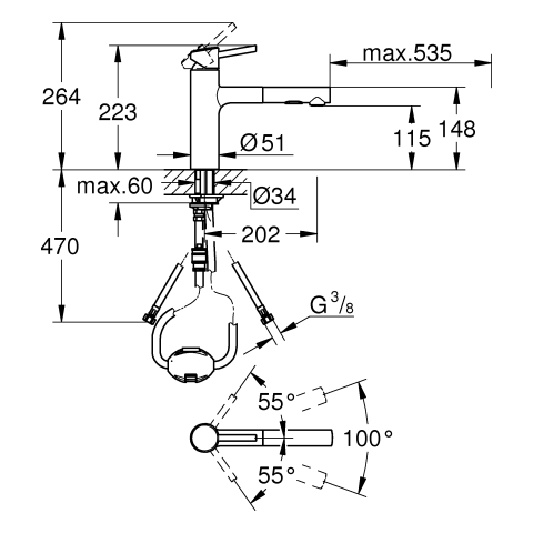 Einh.Spült.batt.Concetto m.ausziehb.Dual Spülbrause verchr.Grohe