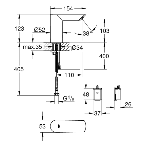 GROHE WT-IR-Elektron. Bau Cosmopolitan E 36452 ohne Mischung 6 Volt chrom