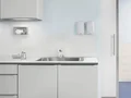 Die elektronische Waschtischarmatur HANSAmedipro von HANSA überzeugt durch ihre berührungslose Bedienung, die für besonders hohe Hygiene sorgt. Sie ist batteriebetrieben und Bluetooth-fähig, wodurch sie einfach in moderne, smarte Badezimmer integriert werden kann. Der kristallklare Laminarstrahl sorgt für ein angenehmes Wassererlebnis, während die Spezialbeschichtung die hygienischen Anforderungen erfüllt. Mit einem Temperatureinstellgriff und einer einstellbaren Heißwassersperre bietet diese Armatur gleichzeitig Komfort und Sicherheit. Ideal für den Einsatz in hochfrequentierten Bereichen.