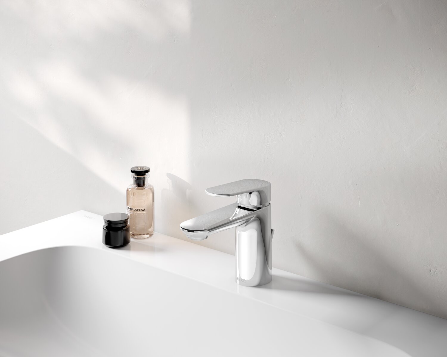 Die Keuco Ixmo 100 ELEMENTS-Edition Waschtischarmatur ist sowohl mit als auch ohne Zugstangen-Ablaufgarnitur erhältlich. Smarte Funktionalität wie der verstellbare Strahlwinkel oder das Schnell-Montage-System komplettieren das hochwertige Konzept.