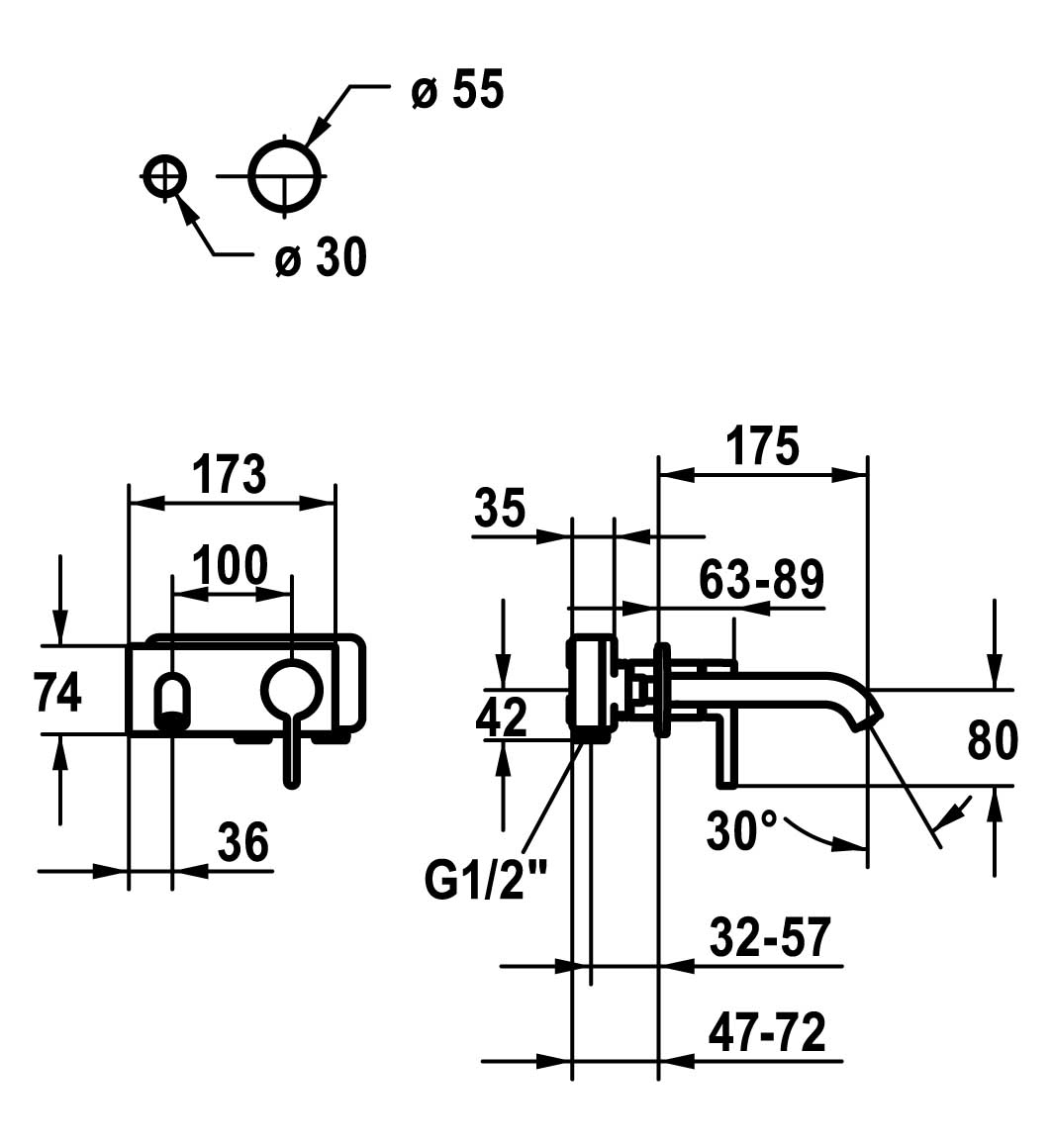 Wand-Waschtischarmatur in schwarzer Ausführung Bevo