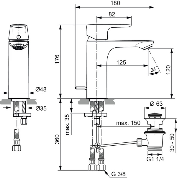 Einhand-Waschtischb. Connect Air Grande m. Abl., chrom Ideal Standard