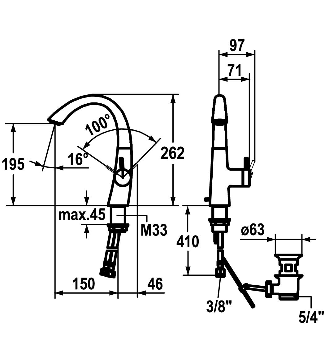 einrichtung, Schwenkauslauf 90 Grad,
