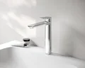 Geradlinig, schlicht und elegant: Dies sind die herausstechenden Kennzeichen der Waschtischarmatur Ixmo 100 ELEMENTS-Edition von Keuco. Dank ihrer schlanken Silhouette verspricht sie Anmut und versprüht darüber hinaus luxuriösen Charme. Nichts lenkt hier von der cleanen Eleganz ab. Die extra hohe Ausführung macht die Armatur zudem perfekt für Aufsatzschalen und -becken.