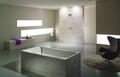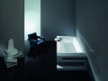 Zahlreiche Pflegeprodukte lassen sich praktisch auf der Badewanne abstellen. Ferner zeigt sich die ergonomische, fließende Formensprache des Inneren nicht nur einladend und reizvoll bei der Benutzung, sondern hat auch stilistisch einiges zu bieten. Sie steht in einem ansehnlichen Kontrast zur präzisen und klaren Form des Randes der Wanne.