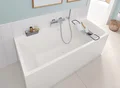Die Badewanne Empora 2.0 von Villeroy & Boch bietet mit ihrem hochwertigen Design die besten Voraussetzungen für einen exklusiven Wohlfühl-Look. Mit dem nur einen cm hohen Rand und dem flächenbündig integrierten Push-to-Open Ablaufventil entsteht ein harmonisches Gesamtbild. Das hier verwendete hautsympathische Quaryl® erweist sich dabei als ideales Material für moderne Designlösungen, die nicht nur edel aussehen, sondern auch zum Entspannen einladen. Zudem fühlt es sich angenehm weich und warm auf der Haut an und punktet mit seiner hervorragenden Isolierfähigkeit, die das Badewasser länger warmhält.