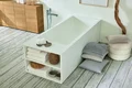 Highlight in diesem white V4 Design ist das seitlich integrierte Regal – optional links oder rechts positioniert, je nachdem, wo die Badewanne stehen soll. Hier liegen Ihre Handtücher immer griffbereit und machen zudem auch optisch so einiges her. Die white V4 Wanne verwandelt jedes Bad in einen Ort der Entspannung.