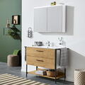 Stellen Sie sich Ihren Waschplatz nach Lust und Laune zusammen: Diese VIGOUR clivia Badmöbelanlage setzt auf einen stehenden Waschtischunterschrank mit zwei Schubladen. Optional kann eine weitere Ablagefläche in Form eines offenen Regalbretts ergänzt werden. Zudem helfen die originellen Handtuchhalter, die breite Abstellfläche des eingelassenen Waschtischs und der zweitürige Spiegelschrank dabei, alle benötigten Badutensilien stets griffbereit unterzubringen.