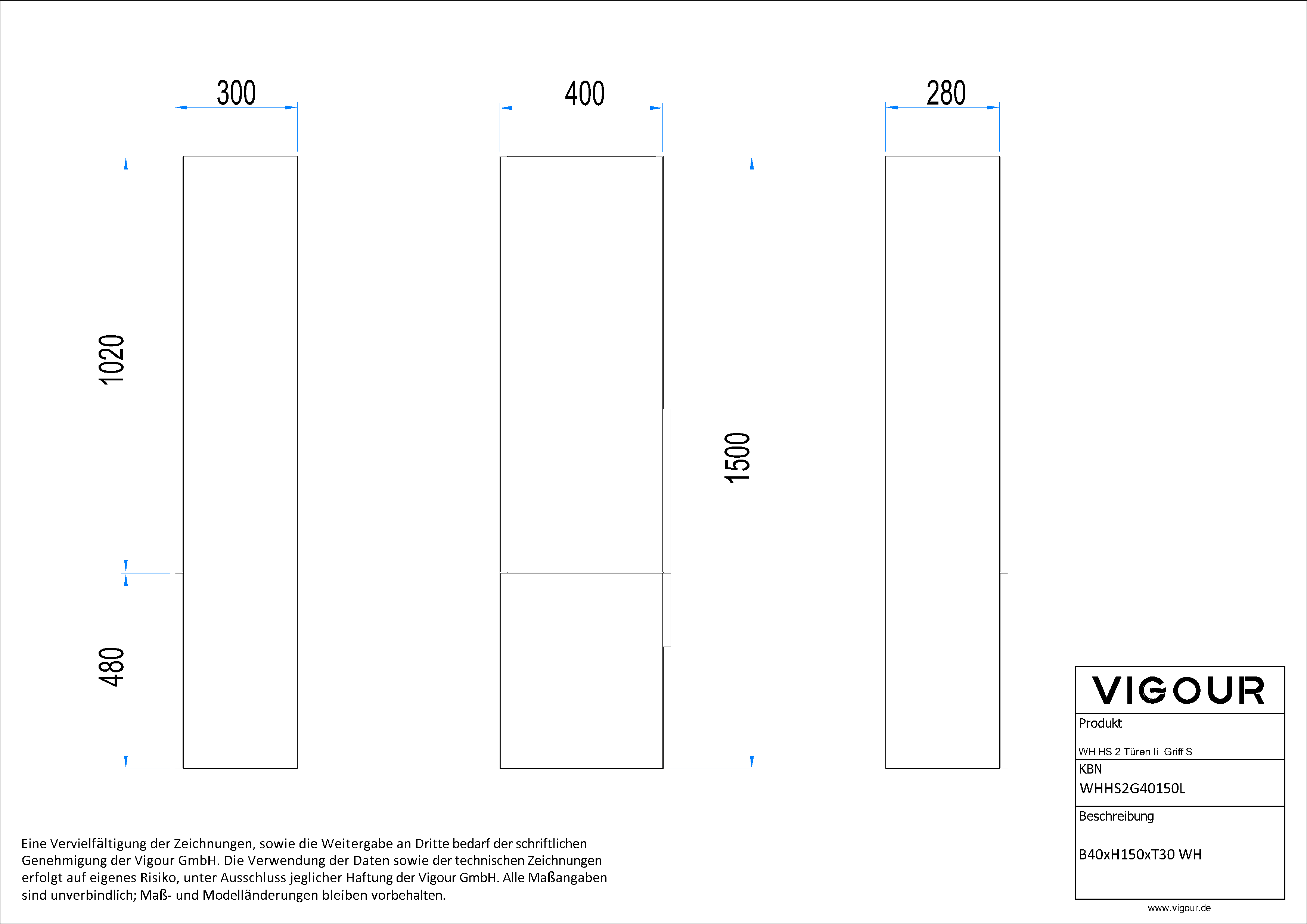 VIG WH HS 2 Türen li Griff S B40xH150xT30 G Graphit matt