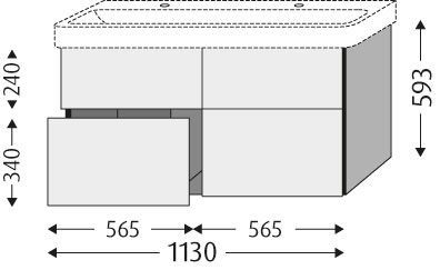 Extrabreiter Waschtischunterschrank mit Auszügen 3way