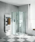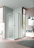 Zeitlos elegant zeigt sich die Ibiza 2000 Duschabtrennung mit Pendeltüren von KERMI. Konzipiert für den Eckeinstieg lassen sich die Türen nach innen sowie außen öffnen und bieten damit maximale Flexibilität. Mit dezenten Anschlussprofilen und edel verchromten Griffen.
