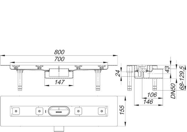 CeraLine Dallmer Nano F 700mm, BH 68mm f.Duschrinne,m.1 Ablaufgehaeuse, Flaeche