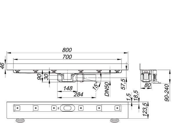 CeraLine Dallmer Plan W 700mm, BH 90mm f.Duschrinne, m.1 Ablaufgehaeuse, Wand